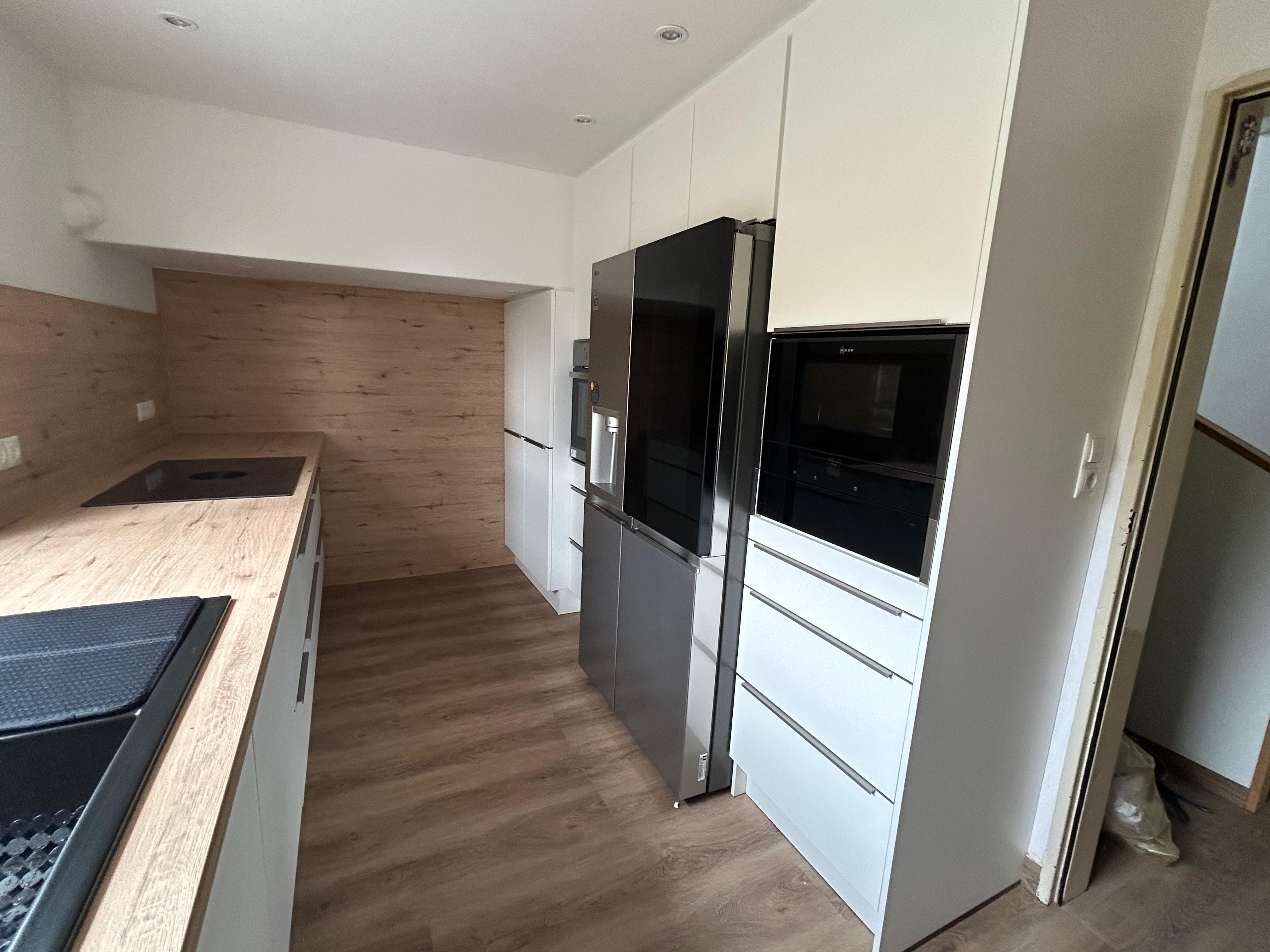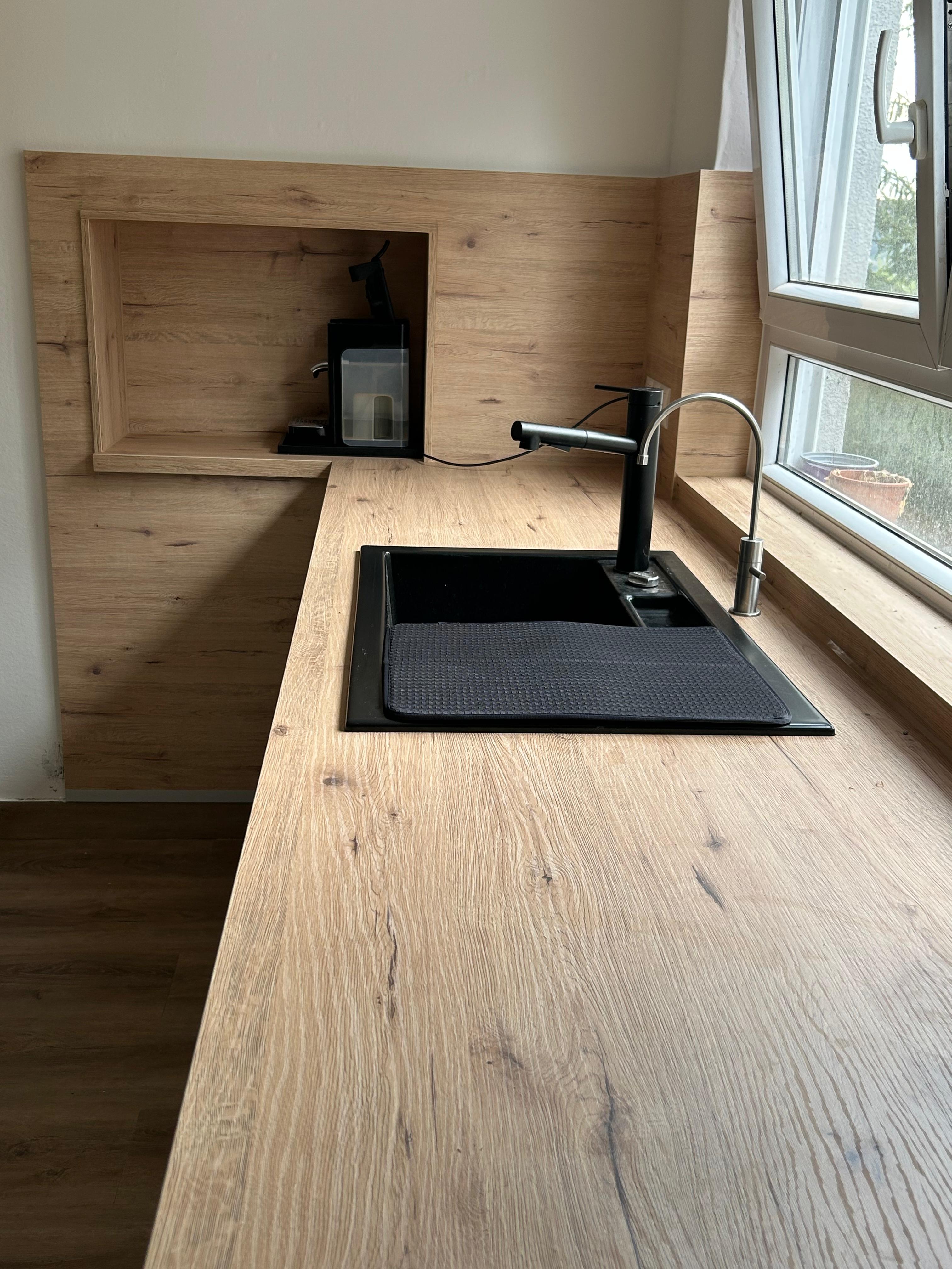 Bei diesem besonderen Projekt durfte ich nicht nur die Möbel planen und bauen, sondern eine komplette Küchenrenovierung von Grund auf durchführen. Vom Boden bis zur Decke erhielt der gesamte Raum ein völlig neues Gesicht. Das Ergebnis: Eine helle, moderne und deutlich wohnlichere Küche, die den Raum optimal nutzt und eine einladende Atmosphäre schafft. Sehen Sie selbst die beeindruckende Verwandlung von alt zu neu.